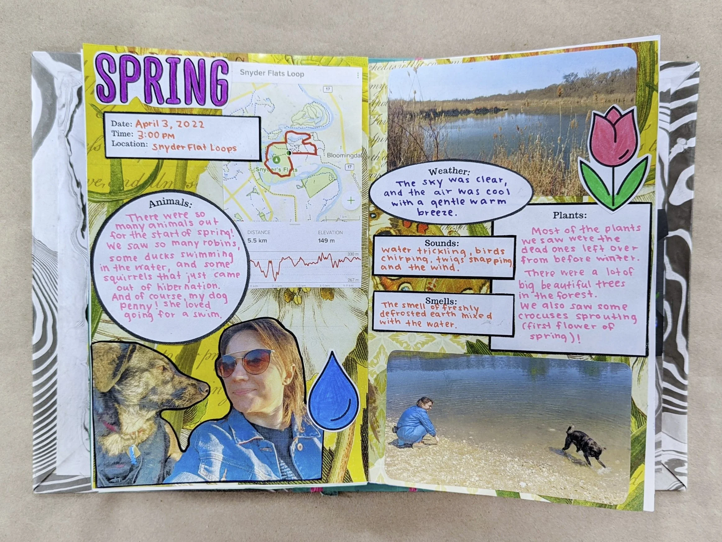 When you’re back home, you can cut out the sections on your printout and paste them into your book with a glue stick. Feel free to include any drawings and photos you want to make a collage inspired by the season of spring!