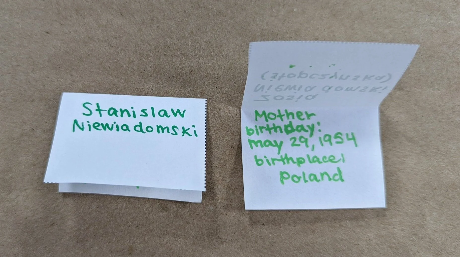 Fold each of the rectangles in half (hamburger-style). On the front, write the name of your family member. On the inside flap, write their relation to you (mother, brother, aunt, etc.), and any other information that is important to record (i.e. birthday, birth place, date of death, etc.).