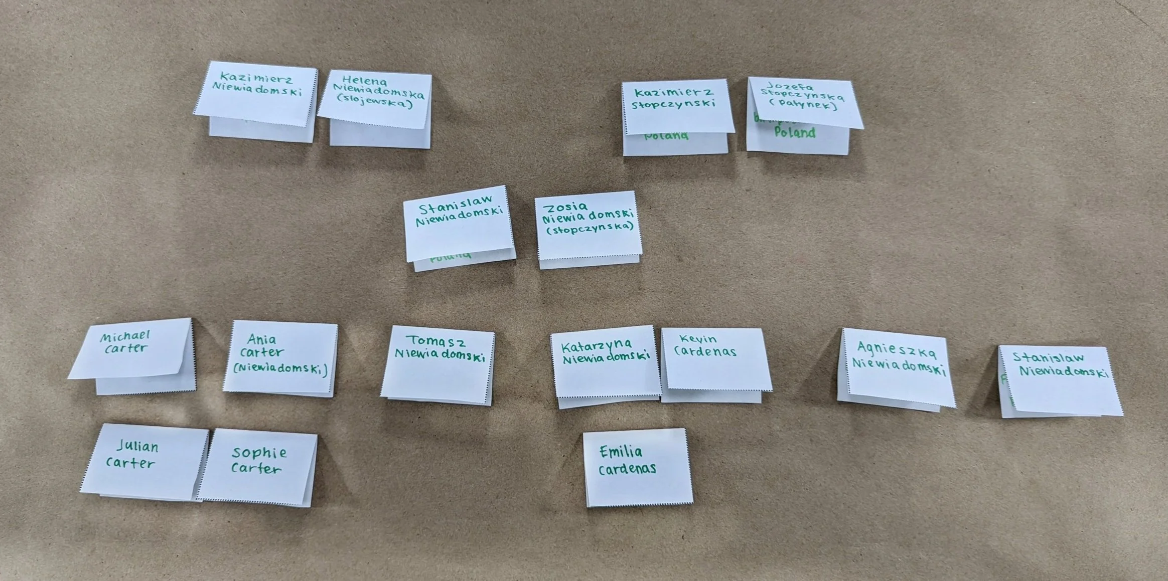 Once you’re ready to start assembling your page, you can use the rectangle card template to create a card for each person in your tree.