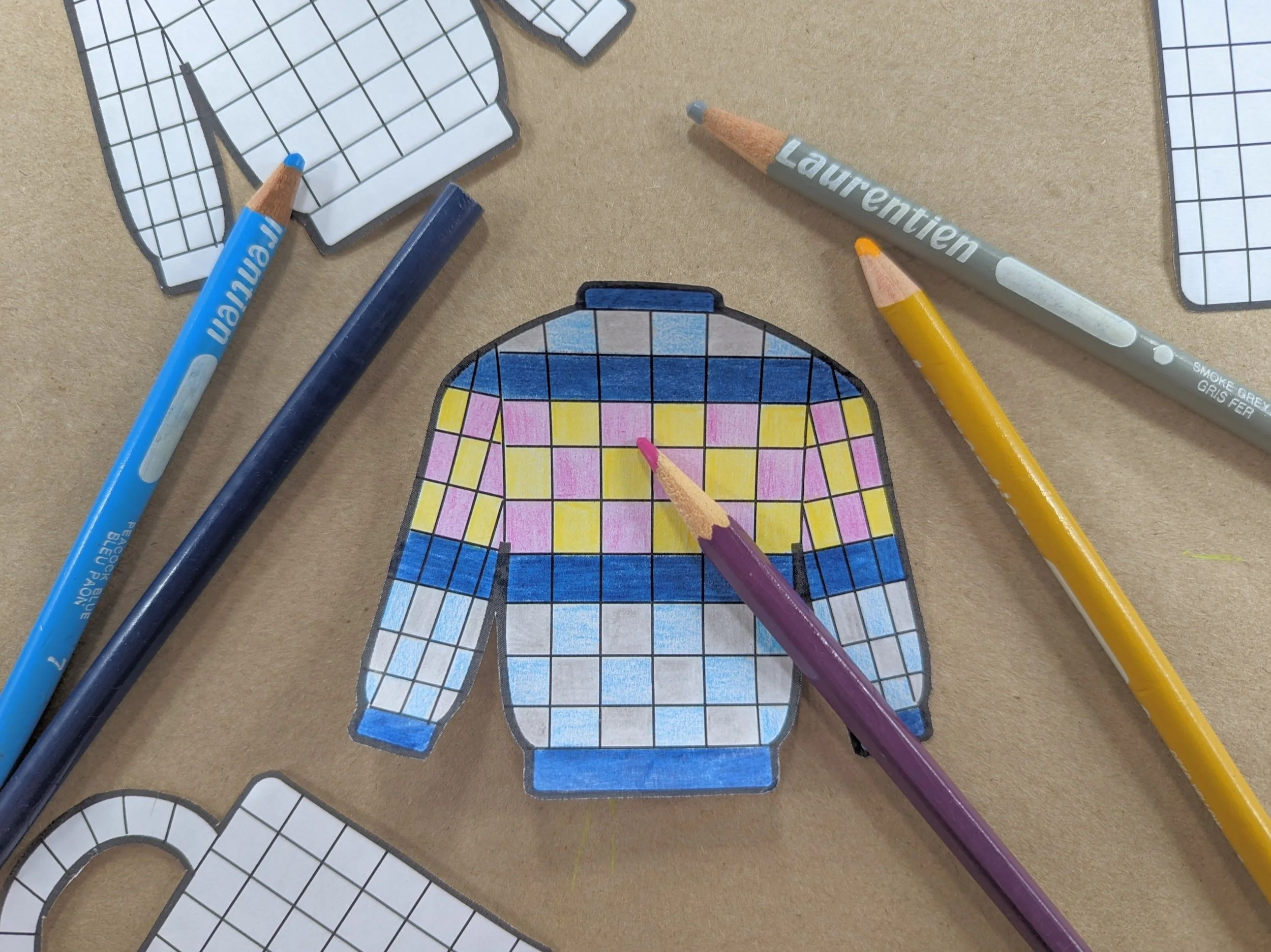 Step 4. Now, using the same pencil crayons, colour in each of the pixelated squares.