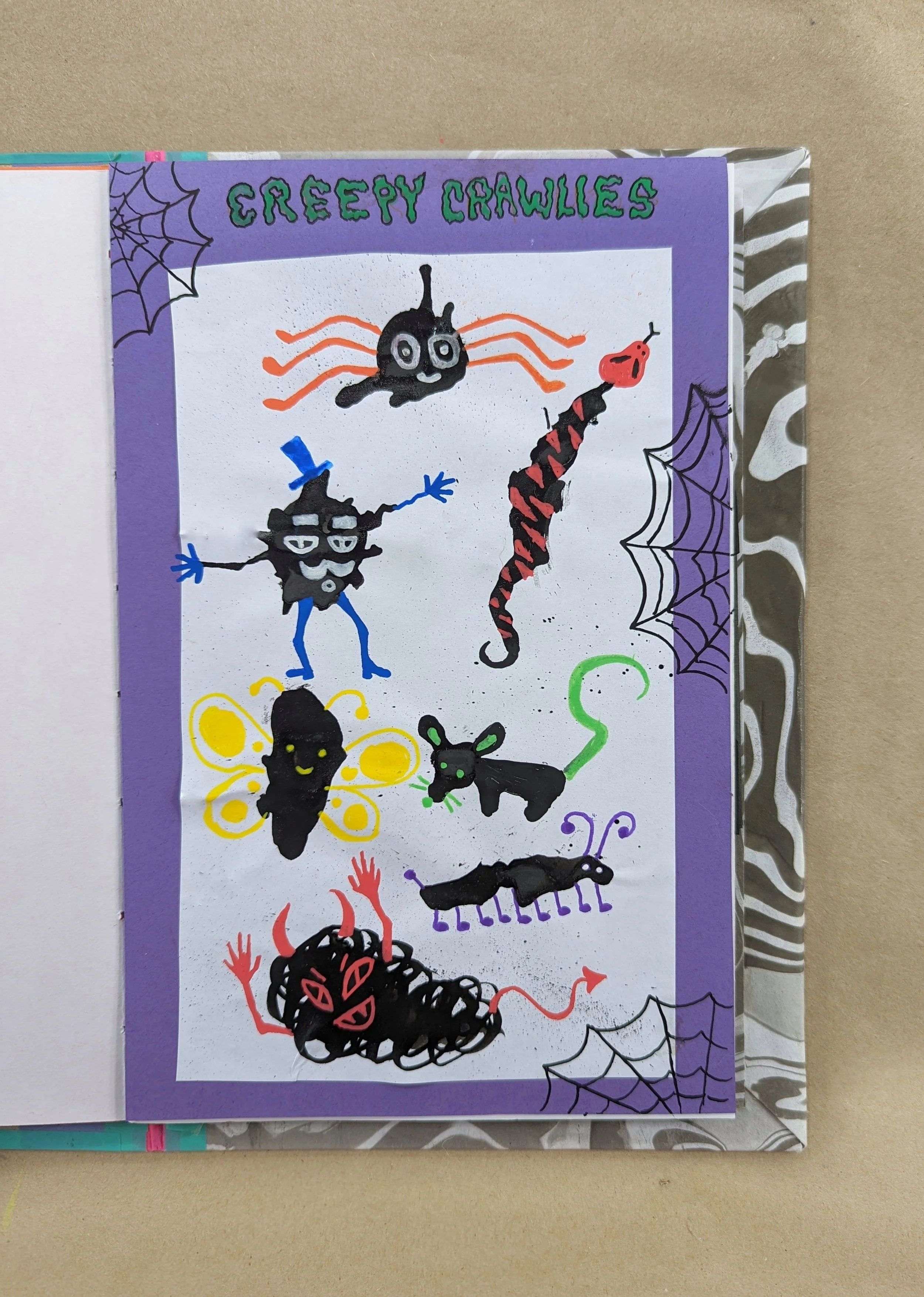 Welcome to week forty-four of your Smash Book! Today, you will be creating creepy crawly creatures with ink.