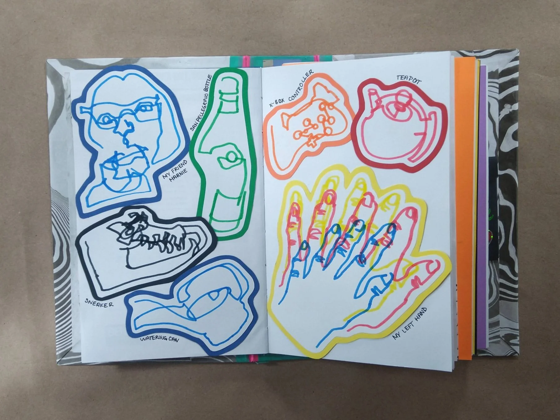 Welcome to week eight of your Smash Book! Today, you will be doing an exercise called blind contour drawing to make some fun and wacky looking drawings!